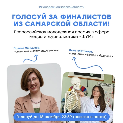 Два представителя Самарской области стали финалистами всероссийской молодежной премии в сфере медиа и журналистики "ШУМ". Всего для участия в конкурсе в 2025 году подано рекордное количество заявок — более 15 000 из всех регионов России, из которых по итогам отбора экспертным жюри были выбраны 84 лучших проекта.
