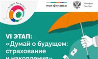 Стартовал новый, VI этап эстафеты "Мои финансы" под девизом "Думай о будущем: страхование и накопления". Он посвящен созданию финансовой защиты с помощью страховых инструментов. На основе результатов тестирования будет сформирован рейтинг регионов.