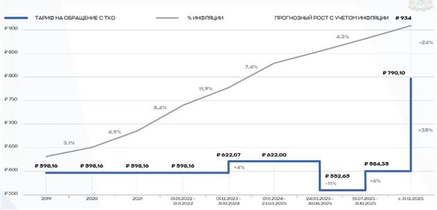 "В Самарской области тариф не менялся с 2019 года. За эти годы значительно выросли цены на топливо, технику, оплата труда, изменились требования к экологии. Искусственное сдерживание тарифа привело к ухудшению ситуации и дальнейшее сдерживание могло бы убить отрасль. Новый региональный оператор - АО "Экология" - с ноября 2025 года начнет работать по новому тарифу 790 рублей 10 копеек за кубический метр. Если, соответственно, разделить увеличение на весь период, то средний годовой рост за пять лет составит менее 6%, что примерно вдвое ниже официального уровня годовой инфляции. По факту это отложенная корректировка и приведение тарифов в соответствие с реальной экономикой", - сказал министр.