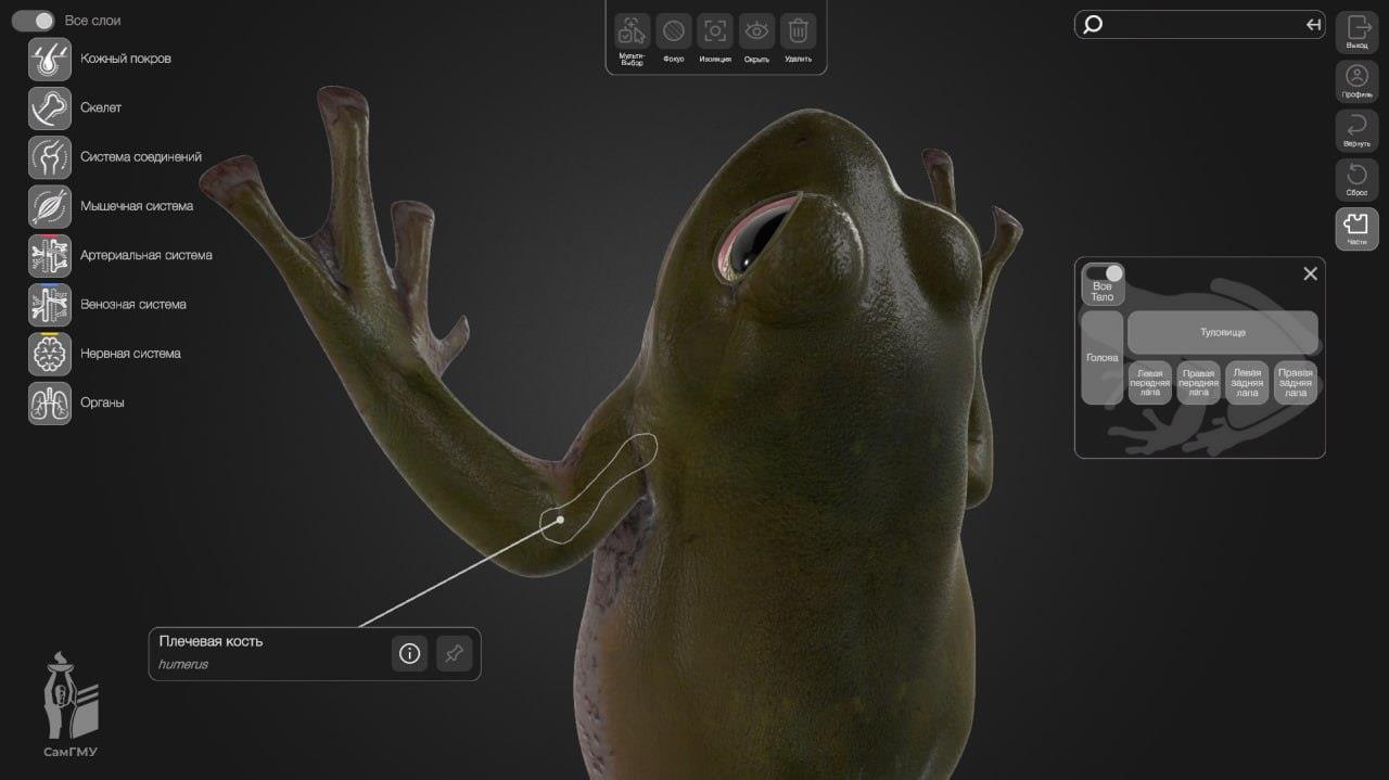 Интерактивный трехмерный атлас "Лягушка" расширил линейку цифровых трехмерных атласов СамГМУ и включен в общий комплект для оснащения агротехнологических классов.