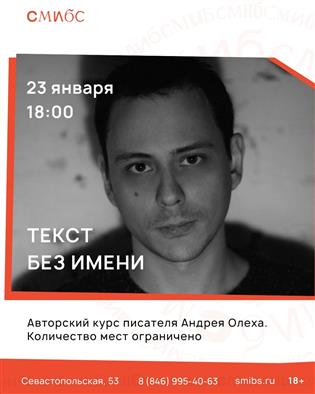 В пятницу, 23 января, в 18:00 в самарской библиотеке № 23 стартует авторский курс "Текст без имени" (18+) писателя Андрея Олеха.