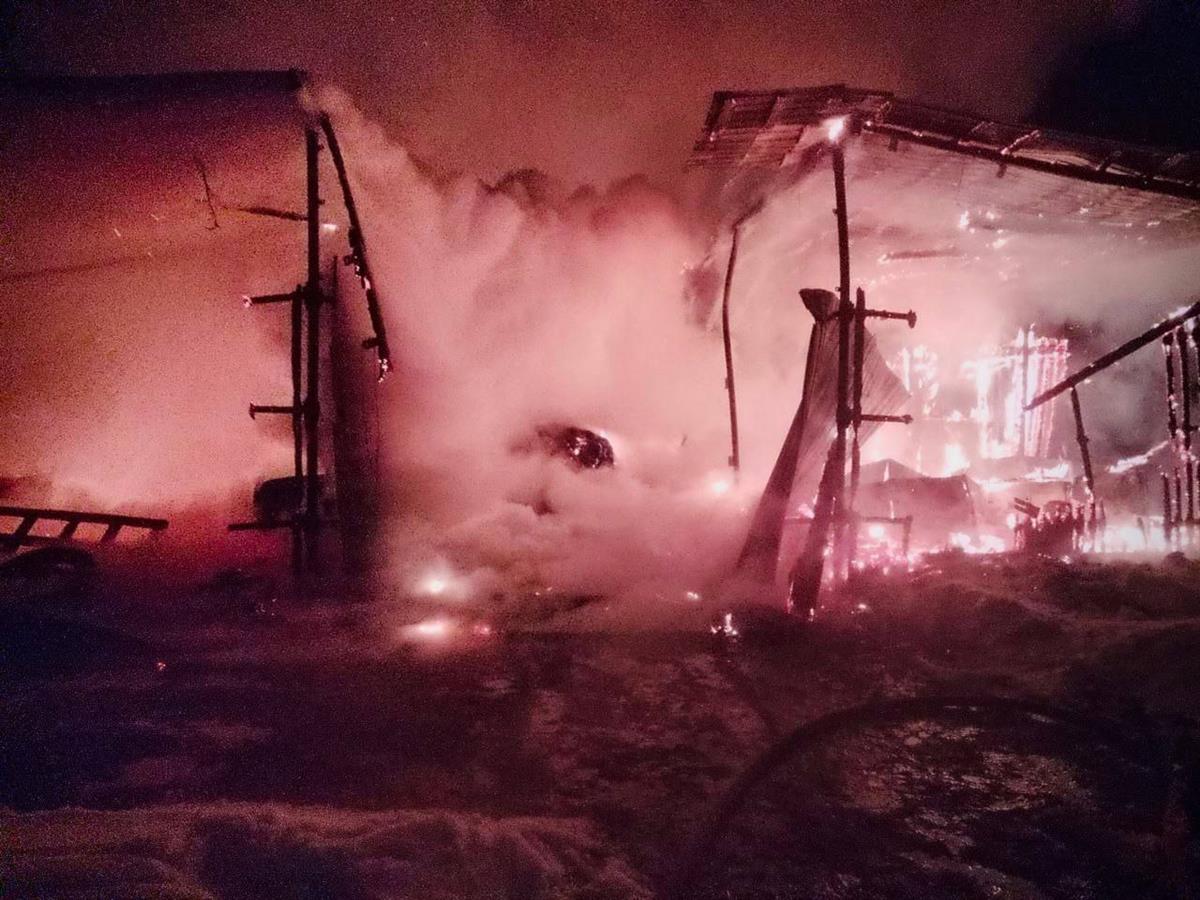 Сообщается, что площадь возгорания на ферме, где разводили овец, кур и коз, составила 250 кв. метров. Пожару присвоили ранг повышенной сложности 1-БИС.