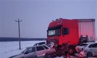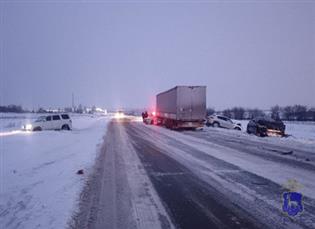 В 17:15 34-летний водитель фуры DAF на 16,1 км трассы Самара - Волгоград во время метели столкнулся с Audi, Mazda, УАЗ Patriot, ВАЗ-21150 и Volkswagen Polo.