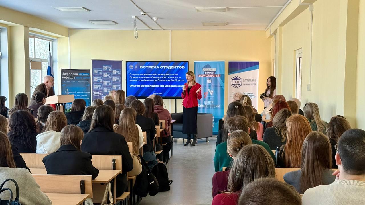 В рамках инициативы губернатора Вячеслава Федорищева по усилению взаимодействия с молодежью врио заместителя председателя правительства — министра финансов Самарской области Ольга Собещанская посетила Самарский государственный социально-педагогический университет.