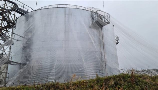 По периметру резервуарного парка устанавливаются вертикальные барьеры высотой 12–15 м с ячейкой 3×3 см — они останавливают даже микродроны массой менее 250 г. Материал радиопрозрачный, чтобы не мешать работе РЭБ-систем и штатной связи.
