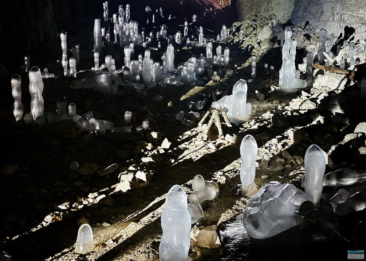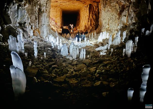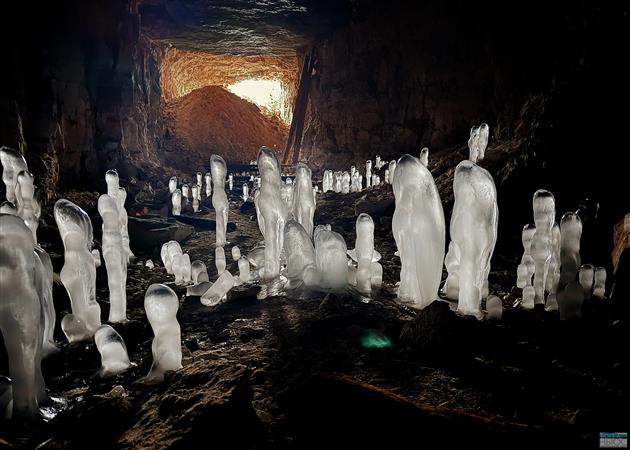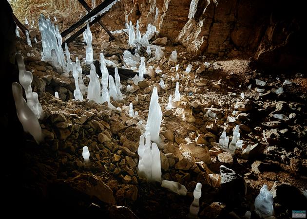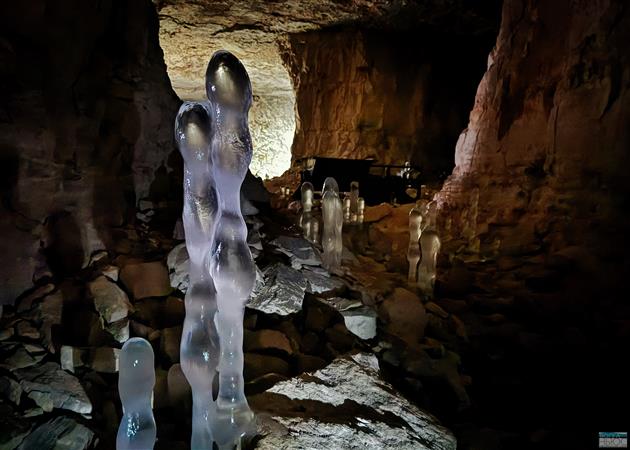 Сталагмиты образуются очень быстро - в течение нескольких часов или дней. Капли воды со свода падают в зону отрицательных температур у пола и замерзают.