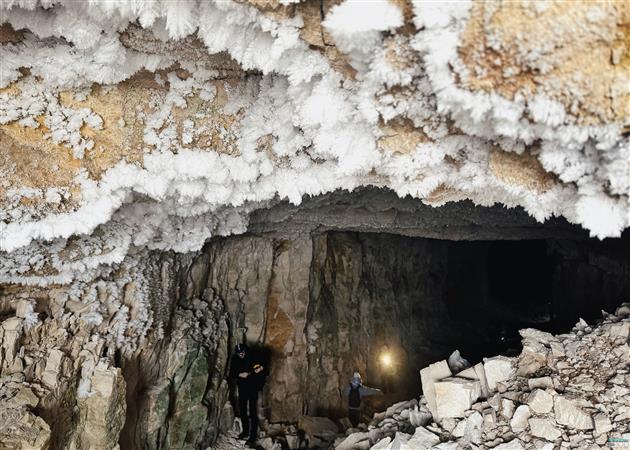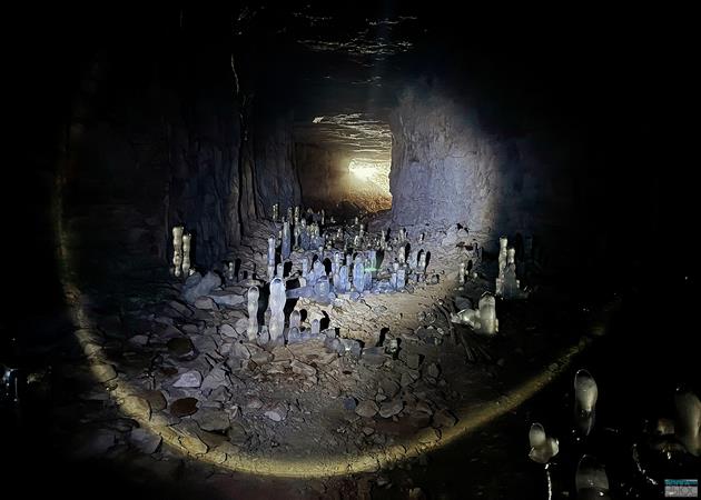 На момент съемки высота сталагмитов в штольнях была примерно на уровне одного метра. Но при определенных погодных условиях они могут вырасти до двух и выше.