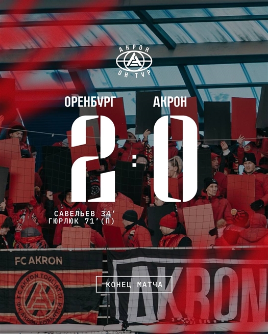 В субботу, 28 февраля, в Оренбурге, в девятнадцатом туре чемпионата России "Акрон" уступил подопечным Ильдара Ахметзянова — 0:2.
