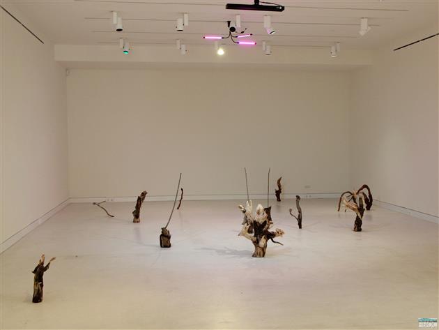 В малом зале А представлен экспериментальный проект "Заговор тополей" куратора Анастасии Альбокриновой. Он вдохновлен историей места и дал вторую жизнь тополям, которые росли около здания галереи и "пали жертвой" коммунальщиков.