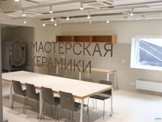 На первом этаже теперь есть три профессиональные мастерские - керамическая, шелкографическая и универсальная. Это первый в регионе комплекс, объединяющий производство, обучение и выставочную деятельность.