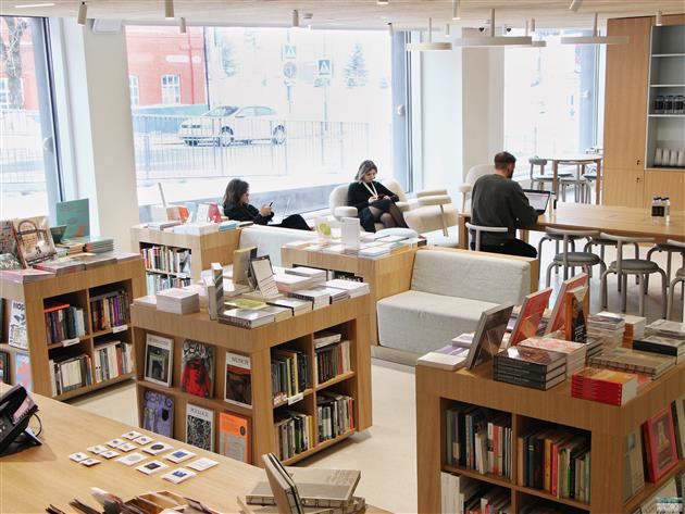 Также на первом этаже галереи появился свой независимый книжный магазин. На полках - издания о современном искусстве и культуре. Здесь можно будет приобрести сувениры галереи "Виктория", мерч и тиражное искусство.