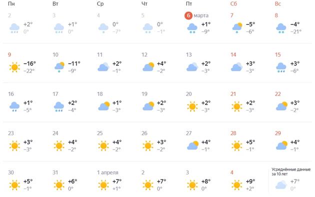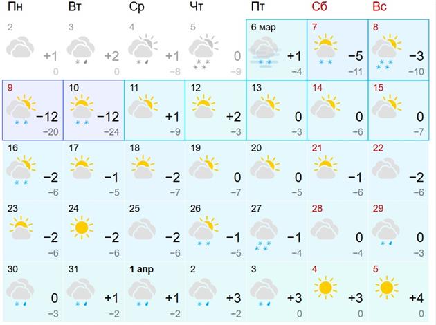 Однако праздничные выходные ознаменовались морозной погодой, которая продержится до 10 марта. Температура воздуха опустится до -28 градусов. Но уже 11 числа стартует потепление. Гидрометцентр сообщает, что ожидается до +2 градусов днем и снег с дождем. Ночью будет -3 градуса. 12 марта выглянет солнце и станет еще теплее: +3 градуса.
