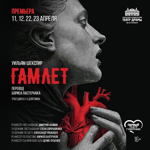 11, 12, 22 и 23 апреля в Самарском академическом театре драмы им. М.Горького состоятся премьерные показы спектакля "Гамлет" Уильяма Шекспира в переводе Бориса Пастернака (16+), сообщает пресс-служба театра.