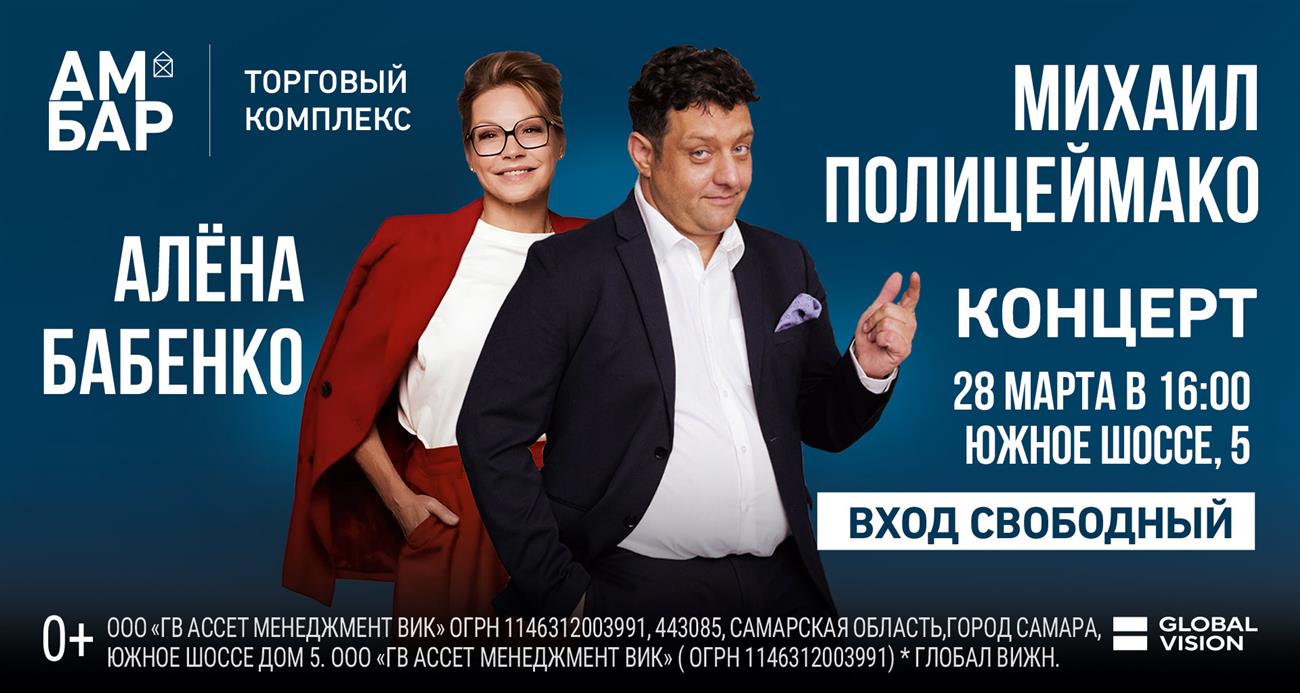 28 марта в ТК "Амбар" самарцев приглашают на выступление артистов театра и кино Михаила Полицеймако и Алёны Бабенко. Зрители смогут посетить мероприятие без покупки билетов.