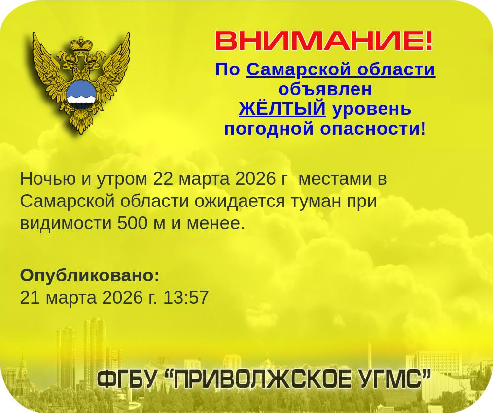 В Самарской области объявлен желтый уровень погодной опасности.