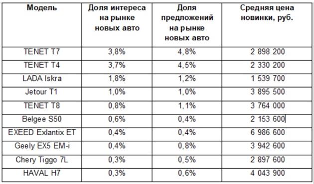 Самым популярным автодебютантом 2025 года стал TENET T7 — эта модель лидирует как по доле интереса пользователей, так и по доле в предложении на российском рынке. При этом доля авто, которые вышли на российский рынок в 2025 году, составила почти 20% от общего объема предложений новых автомобилей в первом квартале 2026 года.