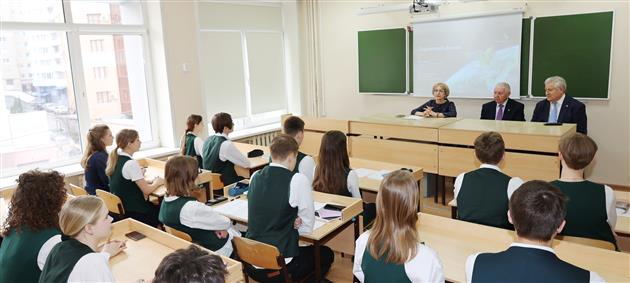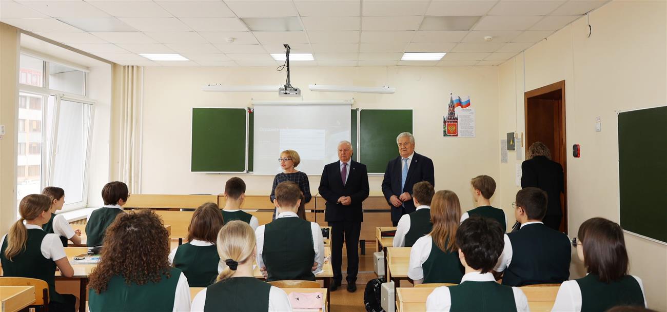 В преддверии Дня космонавтики в рамках проведения урока "Разговоры о важном" в базовой школе РАН гимназии №11 академики РАН - председатель Самарской губернской думы Геннадий Котельников и председатель Общественной палаты Самарской области Виктор Сойфер встретились со старшеклассниками.