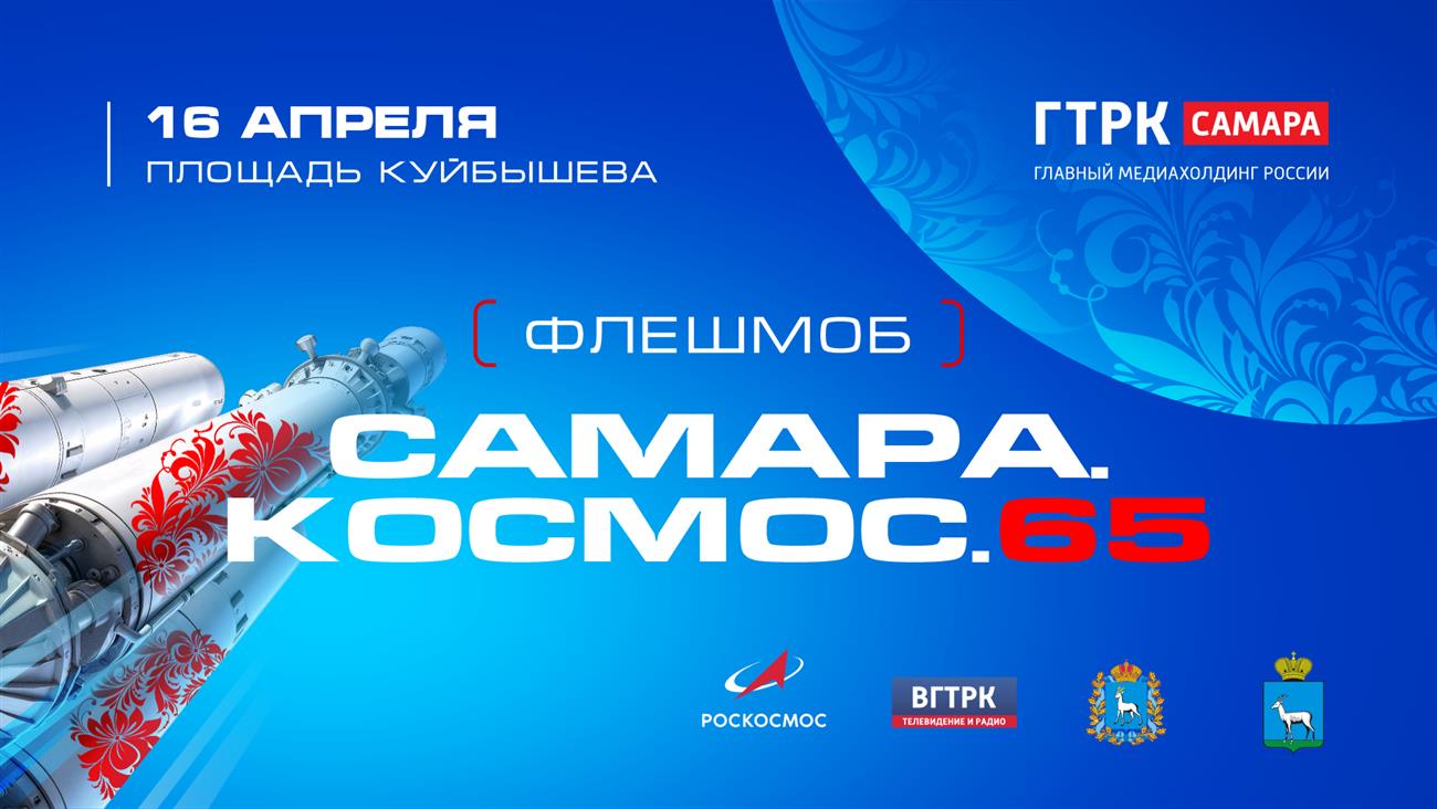 Флешмоб "Самара. Космос. 65" проходит в рамках II Всероссийского медиаконкурса "Русский космос", организованного ВГТРК и госкорпорацией "Роскосмос" при поддержке правительства Самарской области и администрации городского округа Самара.