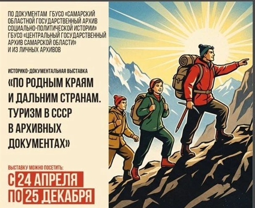 В четверг, 23 апреля, в 11:00 в конференц-зале Самарского областного государственного архива социально-политической истории (ул. Мичурина, 13) состоится презентация выставки "По родным краям и дальним странам. Туризм в СССР в архивных документах".